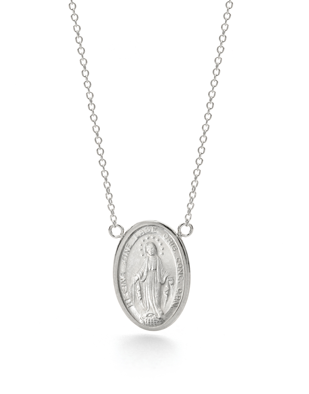 An 18kt Lady of the Miraculous Medal is a religious medal made from 18-karat gold, which is 75% pure gold mixed with 25% other metals for strength and durability. This medal is associated with the devotion to Our Lady of the Miraculous Medal, a Marian devotion originating from the apparitions of the Blessed Virgin Mary to Saint Catherine Labouré in 1830 in Paris, France.