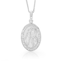 • 18KT White Gold Our Lady Diamond Medal Necklace