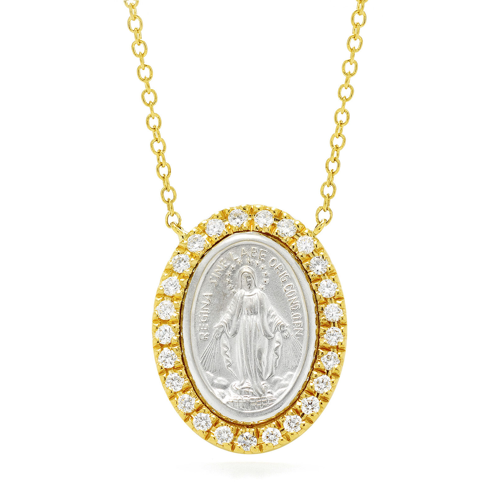 18KT Yellow and White Gold Lady of Miraculous Diamond Medal Necklace