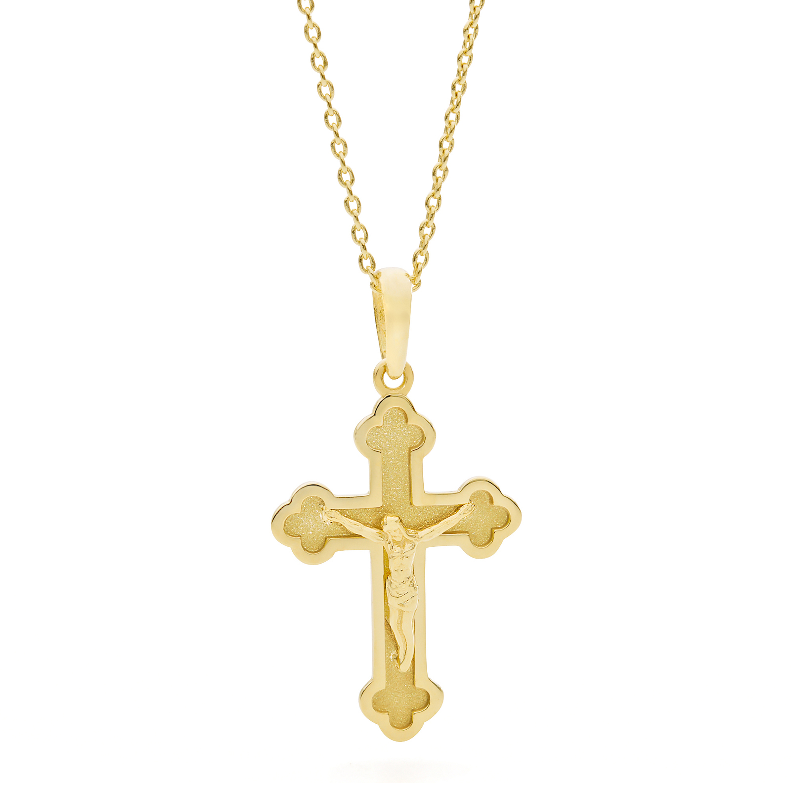 • 18KT Yellow Gold Shiny and Matt Orthodox Cross Pendant
