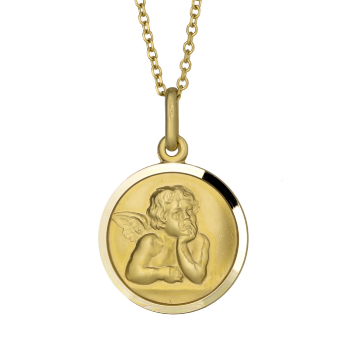 9KT Yellow Gold Angel painted by Raffaello Sanzio, portrait together with another angel at the foot of the famous "Madonna Sistina", one of the masterpieces of the renaissance. (Chain not included)