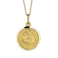 9KT Yellow Gold St Joseph together with Mary and Jesus, St Joseph laid the foundations for a Christian family life, where the husband has a deeply protective and supportive role. It's a perfect gift idea for fathers, whether it's your dad, your brother, or your significant other. St. Joseph is the Patron saint of carpenters, workers, engineers, aviators, but also of migrants and fathers.