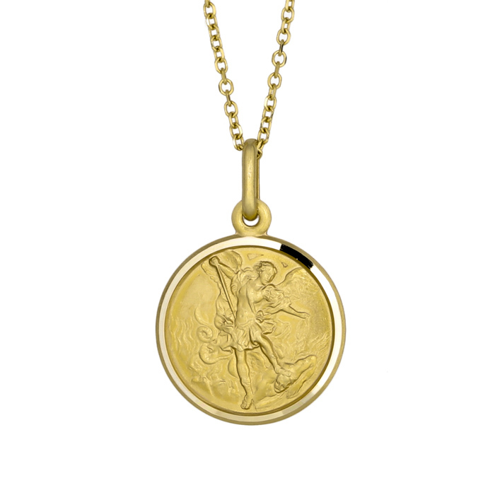9KT Yellow Gold St Michael the Archangel: the magnificent angel who fights the evil and leads the souls towards God. It is a precious symbol of strength and justice. He is the Patron Saint of the Police Force, of paratroopers and radiologists.